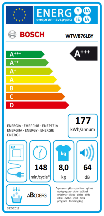 Tehnički podaci Marka Bosch Međunarodna oznaka WTW876LBY Broj artikla WTW876LBY EAN kod 4242005261024 Tip instalacije Samostojeći Da li ovaj uređaj treba da bude ugrađen No Plavo oko Glass window Poklopac / Dvojna vrata Vrata Tip punjenja Punjenje spreda Otvaranje u desno Tip zagrejavanja Electric Priključna snaga 800 W Dužina priključnog kabla 145.0 cm Tip utičnice Gardi utikač sa uzemljenjem Podesive stopice Da - sve Maksimum podesivosti stopica 15 mm Širina 598 mm Dubina 613 mm Dubina sa otvorenim vratima na 90 stepeni 1105 mm Visina zapakovanog proizvoda 890 mm Širina zapakovanog proizvoda 630 mm Dubina zapakovanog proizvoda 670 mm Bruto težina 55.8 kg Visina zapakovanog proizvoda 35.04 " Širina zapakovanog proizvoda 24.8 " Dubina zapakovanog proizvoda 26.38 " en: Drying process en: automatic Kapacitet pranja 8.0 kg Energetska klasa1 A+++ en: Energy consumption electric dryer, full load - NEW (2010/30/EC) 1.44 kWh Standard cotton programme time at full load 148 min Energy consumption electric dryer, partial load - NEW (2010/30/EC) 0.85 kWh Standard cotton programme time at partial load 95 min Weighted annual energy consumption, electric dryer - NEW (2010/30/EC)2 177.0 kWh/annum Power consumption in off-mode - NEW (2010/30/EC) 0.10 W Potrošnja električne energije u režimu pripravnosti - NOVO (2010/30/EU) 0.10 W Trajanje uključenog režima - NOVO (2012/30/EC) 30 min Weighted programme time 118 min Klasa efikasnosti kondenzacije - NOVO (2010/30/EC)3 B Average condensation efficiency full load (%) 86 % Average condensation efficiency partial load (%) 88 % Weighted condensation efficiency (%) 87 % Tip aparata Kondenzacija en: Standard cotton programme Cotton cupboard dry Energy Star Most Efficient No Fluorovani gasovi sa efektom staklene bašte Ne Hermetički zatvorena jedinica Da Global warming potential 0.000 t The quantity expressed in CO2 equivalent 0.000 t Automatski program Da Biranje vremena sušenja No Biranje temperature sušenja Da Intervalna funkcija No Osvetljenje unutrašnjosti bubnja Da Tip osvetljenja LED light Tuba za odvođenje vazduha No Prikaz progresa sušenja TOLEDO LED – na dodir Prikaz preostalog vremena Da Stop delay time max. 24 h Mogućnost odloženog uključenja kontinuirano Opcija za zaustavljanje odlaganja ili pokretanje odlaganja Stop Prikaz zasićenosti filtera Da Prikaz "Isprazni posudu" Da Vodovodna cev No Lista programa dodatni programi Nežno pranje Nežno Prkaz završetka programa Akustično Zapremina bubnja 112 l Materijal bubnja Stainless steel Ažuriranje softvera No Glavne karakteristike AutoDry, Mašina sa toplotnom pumpom Serija Serija 6 Aparati povezani tehnologijom Home Connect4 No Dijagnostika na daljinu No Google Assistant No Amazon Alexa No Bosch Smart Home No Fitbit No Magenta Smart Home No IFTTT No Širokopojasna tehnologija Vrata Energy Smart No Daljinski pristup Ne Održavanje: Moguc´nost daljinskog ažuriranja No Mogućnost daljinskog unapređenja No Mogućnost kontrole glasom Ne Mogućnos bezkontaktne komunikacija Ne Vrsta aparata 010 Easy-Clean-Filter No Klasa emisije buke u vazduhu C Voltaža 220-240 V Neto težina 54.9 kg Boja Bela Kabel uključen Da Gross weight 123.000 lbs Boja / materijal kućišta Bela Net weight 121.000 lbs Emisije buke u vazduhu 65 dB(A) re 1pW iSelect displej na dodir No Program „alergija plus“ Da Funkcija vremenskog odlaganja Da Način montaže Samostojeći Visina 842 mm Zaštita 10 CO2 Equivalent - Total GWP 0 kg Frekvencija 50 Hz Osnovna boja proizvoda Bela Door Opening Angle 180 ° Dimenzije aparata 842x598x613 mm Nivo buke 64 dB(A) re 1pW Filling Quantity Cooling Agent 0.149 kg Potrošnja energije u isključenom režimu 0.10 W Potrošnja energije pri odloženom pokretanju 4.00 W Weighted energy consumption ZA 1.10 kWh Daljinski informacioni sistem Ne QR kod HTTPS://EPREL.EC.EUROPA.EU/QR/2115103 Made in Germany No Program za sportsku garderobu Da Outdoor No Program higijena Da Program Da Program za košulje Da Intelligent Cleaning System No Program za peškire Da Dodatak za odvod vode No Wave drum No softdrydrumsystem Da Irondry No AutoClean No Iron Assist No AutoClean No Korpa za sušilice No Smart Dry No Hygienic program Da Potrošnja gasa No jezici na raspolaganju Simboli, Eastern European English ECO Sensor No Boja / materijal Bela Pomeriva radna ploča No Add a garment No Elementi za upravljenje push-button, LCD Upravljanje Električni Dodatne funkcije Allergy Plus / Hygiene, Pamuk, košulje/bluze, perjana garderoba, Osetljivo, peškiri, Mešano, Brzi 40, Garderoba za sport, Jorgan, Sintetika, Vuneni završetak, Vremenski program hladno, Vremenski program toplo Elektronski testni programi servisa Da Extended wrinkleblock No ENERGY STAR® certified No Air fluff / no heat No Dimensions of the packed product 35.03 x 24.80 x 26.37 pumpa za sušenje Da EAN bar-kod '!2E20AF-cgbace! Vrata Full cover door with window Država proizvodnje PL Tip aparata F Color Buttons white Door Frame Silver-black grey Color Dial Chrome-black Set za kondenzat No Statistički broj 84512100 Error messages No MFRNR-code 0001000026 Brzo sušenje Ne Dečiji sigurnosni sistem Da Područje H14 ActiveWear Da Skladištenje Da Door handle position left Čupkast filter Da Wool Care Da door lock Pull-Open Latch Drying control Autom thr electr damp detect, kondenzacioni vazduh preko toplotne pumpe EAN14 14242005261021 AutoDry tehnologija Da Delicates Da Antivibracioni zidovi Da Drum structure Da Jeans No Sound insulation AntiVibration Dampness extraction Air condensation Timed Dry No Pauza/dopuni funkcija No Manufacturer BSH FLCD, Lodz Short Program No Outdoor/Impregnacija No Heavy Load No program 15 min No TFT displej - ekran visoke rezolucije u boji No Type of buttons Touch control HEADER4 8 kg Basket for woolens No Senzor za merenje vlažnosti Autom thr electr damp detect, kondenzacioni vazduh preko toplotne pumpe Uklanjanje nabora parom No Ekstremno tiho No Type of dial jog dial AutoClean tehnologija Da SpeedPe
