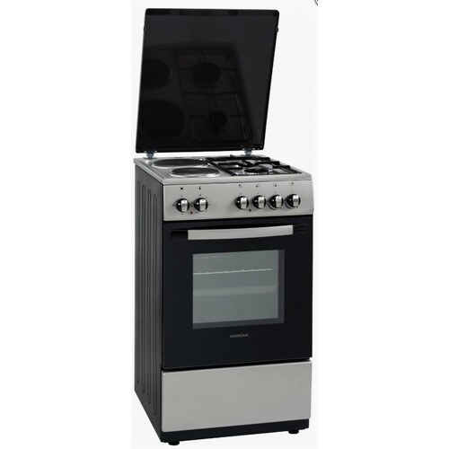 Energetska klasa A Ringle levo napred o145 mm, 1000W levo nazad o180 mm, 2000W, ekspres desno napred plinski gorionik, 3000W desno nazad plinski gorionik, 1750W Paljenje električnom varnicom da Plamenici sa osiguranjem da TURBO rerna Zapremina rerne 50l Dimenzije rerne (ŠxVxD) 37x33x43cm Snaga gornjeg grejača 1000W Snaga donjeg grejača 1000W 3 funkcije rerne Defrost, Gornji+donji, Gornji+donji+ventilator Profilisane vođice Rešetka 1 duboki pleh Dvostruko zastakljena vrata Fioka Poklopac Naponski kabal Električni priključak 3N Ukupna priključna snaga 5kW Plinski priključak G30/30 mbar Kategorija II2H3B/P Ukupna priključna snaga 4,75kW Potrošnja struje pri klasičnom načinu grejanja 0,79kWh Dimenzije (ŠxVxD) 50x85x60cm Masa aparata 43kg Dimenzije pakovanja 55x98x69cm Masa pakovanja 45kg Boja inox Garancija 5 godina